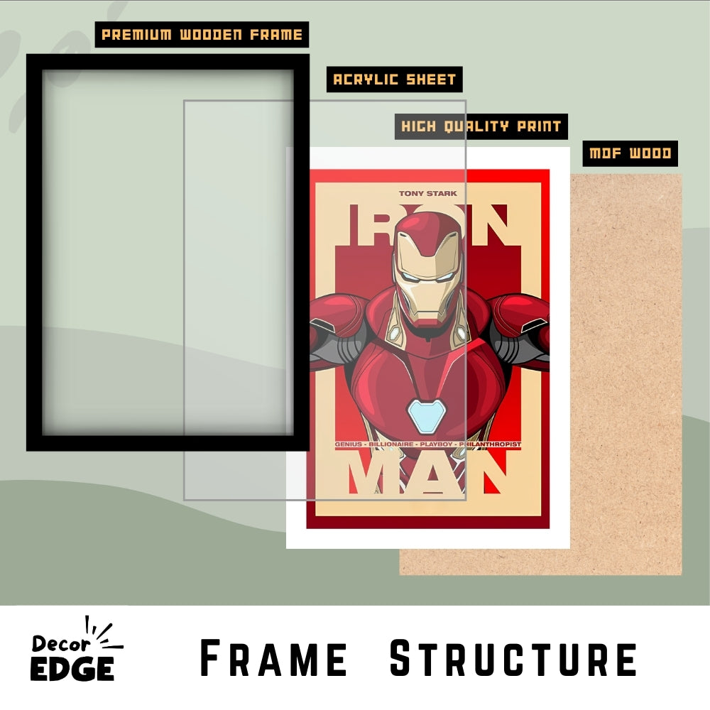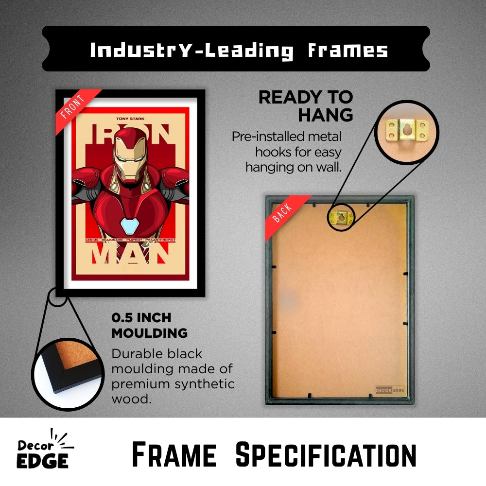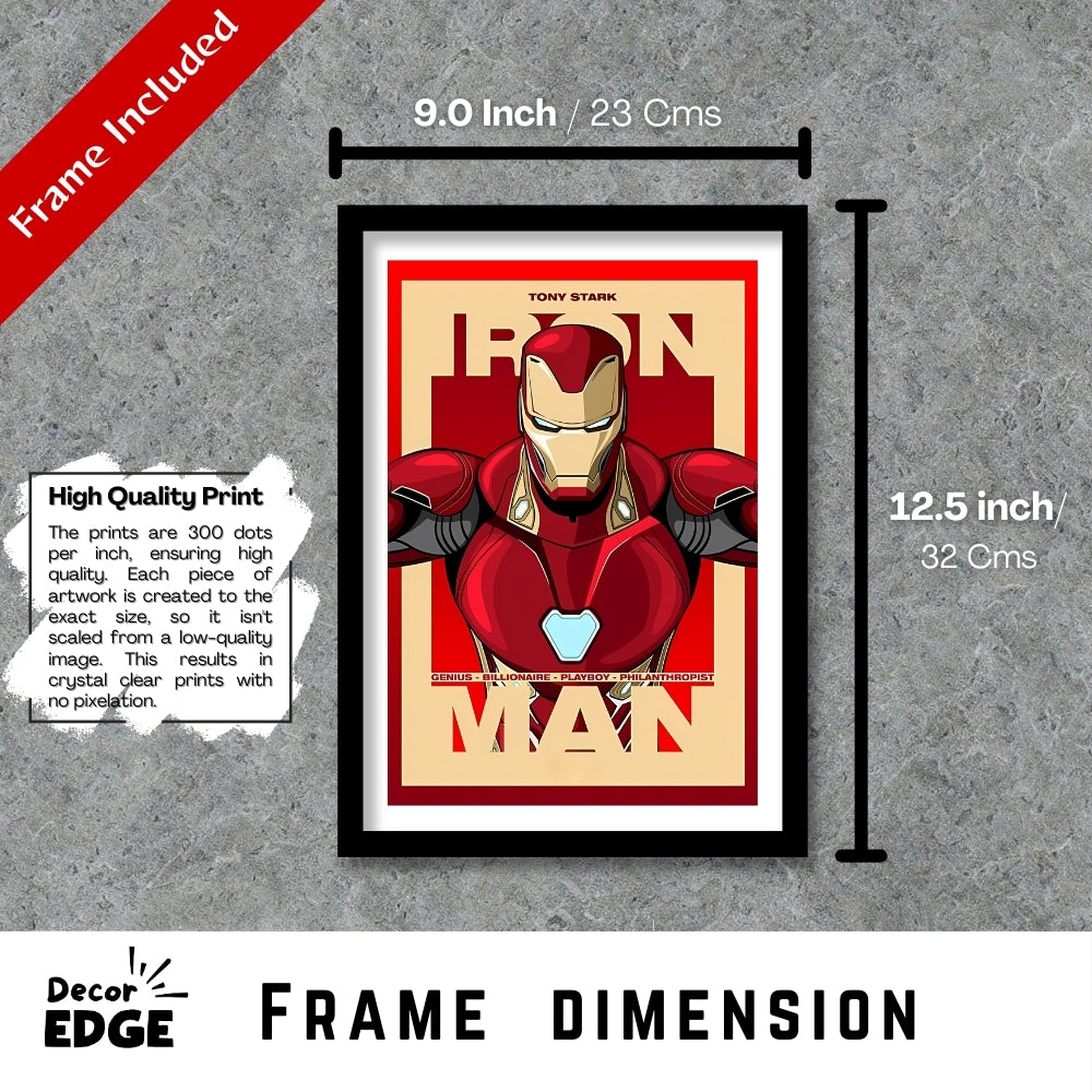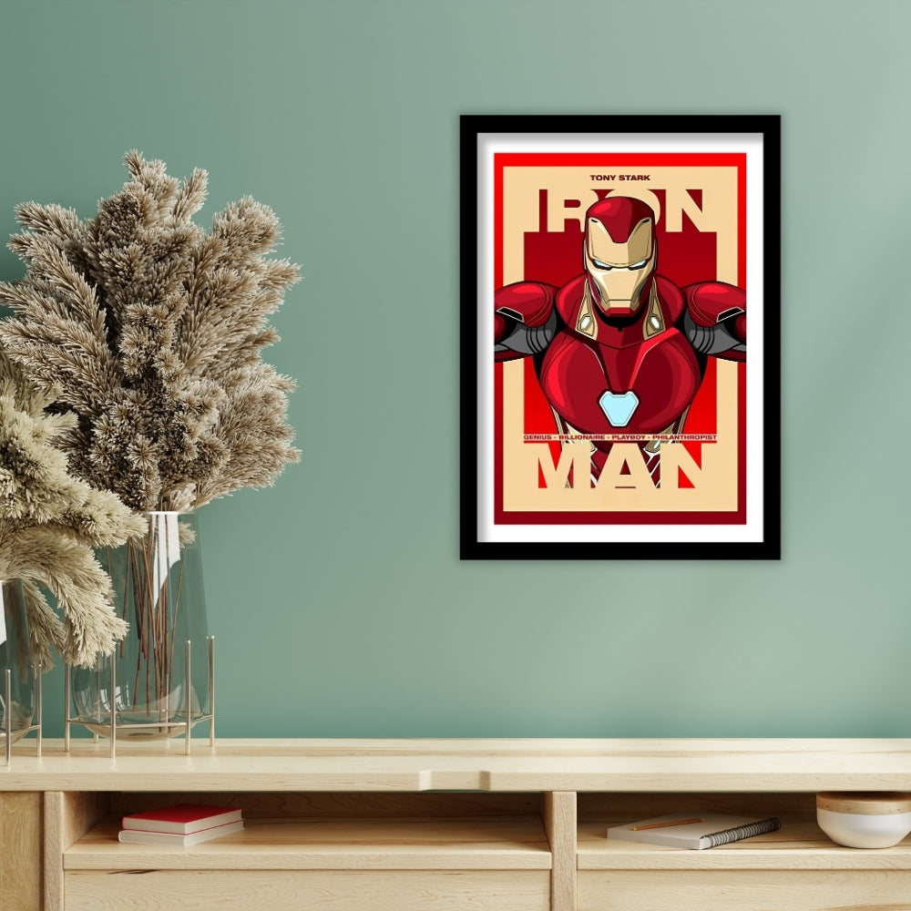 Pay tribute to the legendary Tony Stark with this bold and vibrant poster showcasing the iconic Iron Man suit. Featuring sharp artwork and the tagline "Genius, Billionaire, Playboy, Philanthropist," this piece celebrates the essence of the man behind the armor. Perfect for fans of innovation and heroism, this framed poster with a premium matte finish is a must-have for any Iron Man enthusiast.